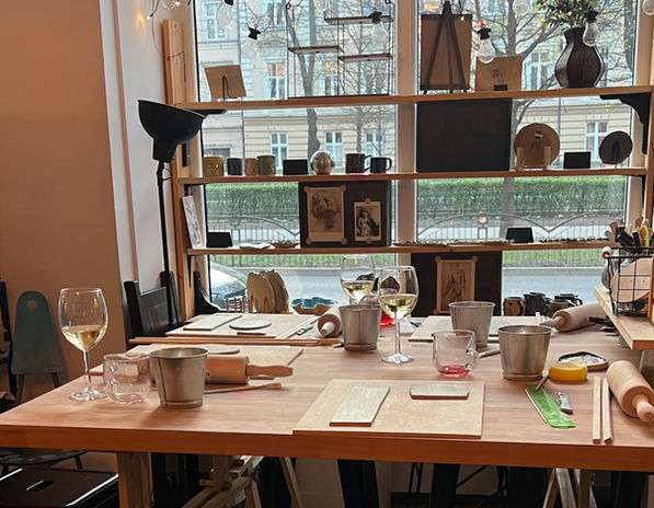 We offer workshops in clay sculpting, ceramic painting, and linocut. Learn new techniques, relax, and spend creative time with your closest friends. All of this takes place in a beautiful, stylish space where you can dress up and enjoy a festive, creative atmosphere with a glass of wine in hand!